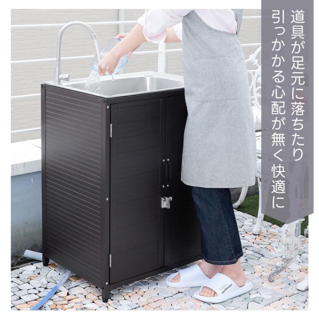 ガーデン シンク 深型 深底 ガーデンシンク 収納 扉 エクステリア ガーデンファニチャー 掃除 洗濯 家庭菜園 園芸 流し台 台所 BBQ キャンプ バーベキュー コンパクト 水場 お洒落 シック 省スペース レトロ モダン 隠せる 手洗い場 庭 庭づくり 外作業 植物 手入れ ペット 愛猫 愛犬 シャンプー アウトドアキッチン 蛇口 レジャー
