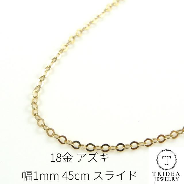 18金 18k アズキ チェーン ネックレス 幅1mm 45cm 0.8g K18 スライド レディース プレゼント ギフト