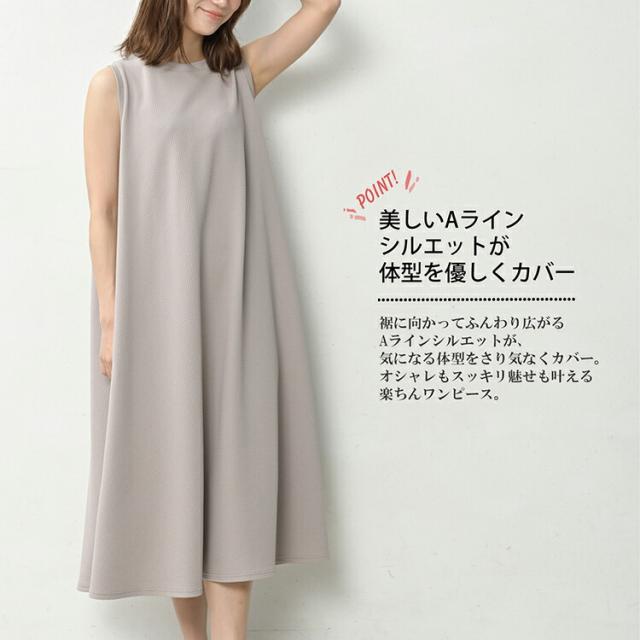 一枚でスッキリ体型カバーできる Aラインフレアワンピース。 重ね着しやすいノースリーブデザイン。 上からストンと着るだけで コーデが完成する楽ちんワンピースです。 |