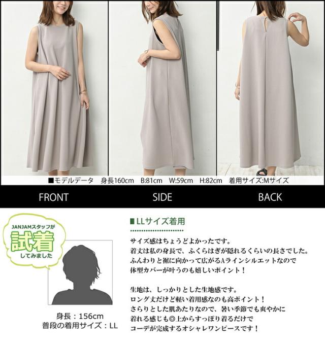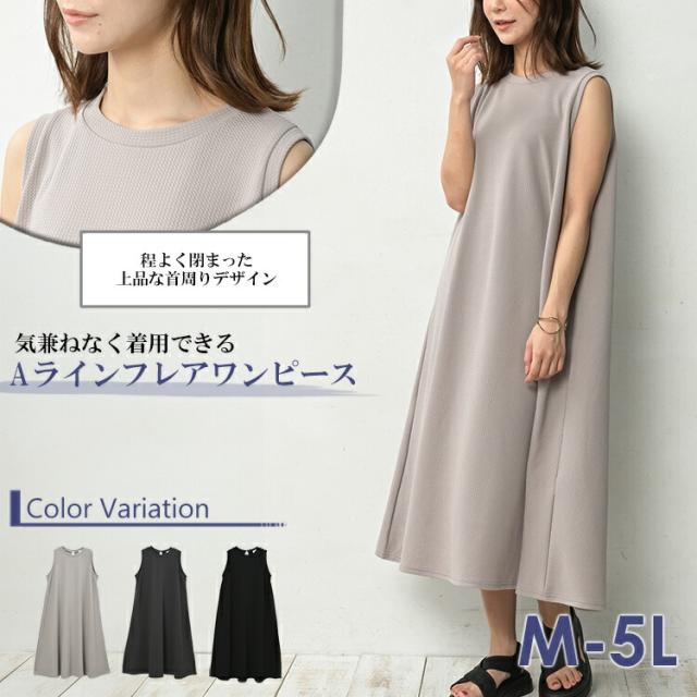 大きいサイズ レディース Aラインワンピース ロング丈 ノースリーブ フレア バックスリット M/LL/3L/4L/5L ゆったりサイズ ぽっちゃり女子 プラスサイズ