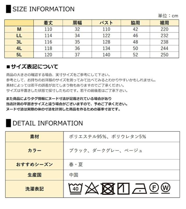 5L:着丈120 肩幅37 バスト140 脇周52 裾周250