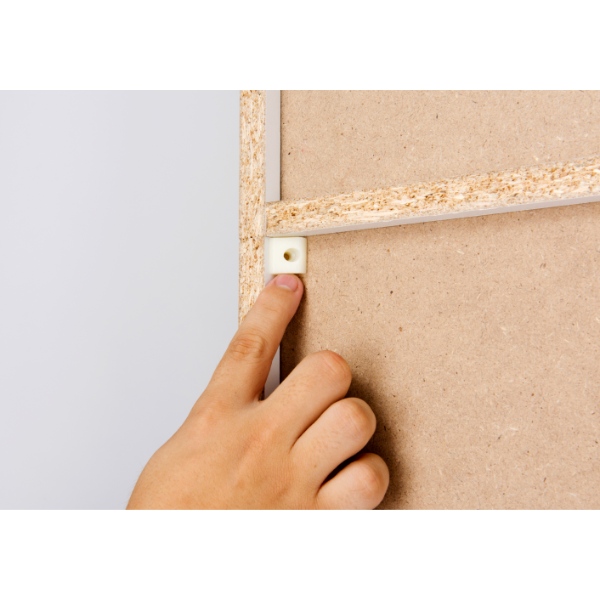 4つ同梱してある固定樹脂は、2つは上下の固定補強、2つは壁との転倒防止としてご利用できます。