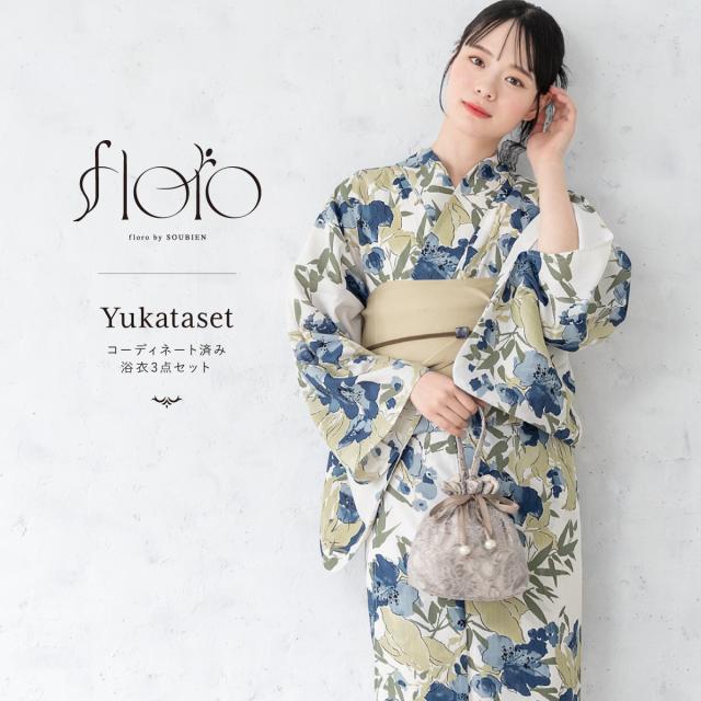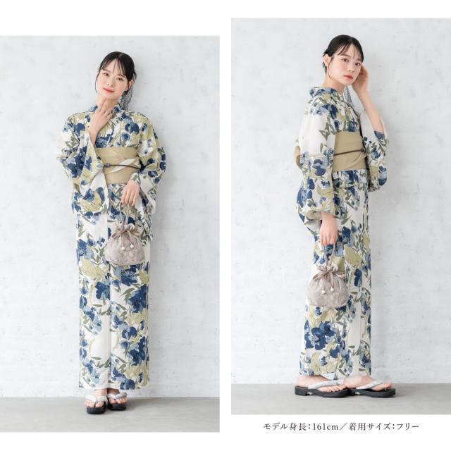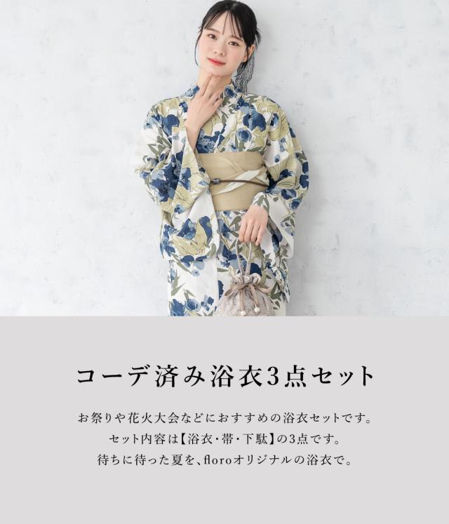 浴衣 セット レディース 浴衣セット 半幅帯 2026 大人 3点セット ベージュ 藍色 ネイビー 青 花 ポリエステル Sサイズ フリー 送料無料