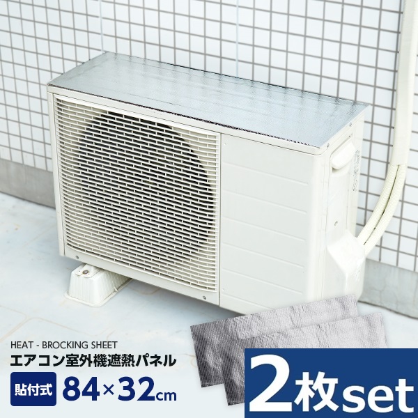エアコン室外機カバー 2個セット エアコン室外機遮熱パネル貼付式 日よけ アルミ製 節電 日除け エアコン遮熱シート 日よけシート 日よけカバー 2枚入 メール便