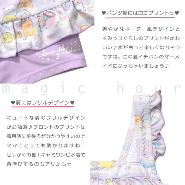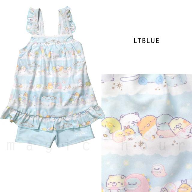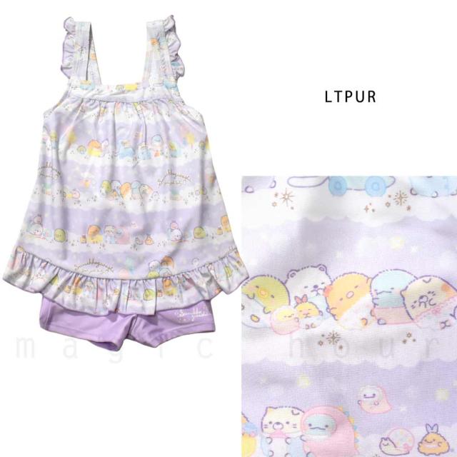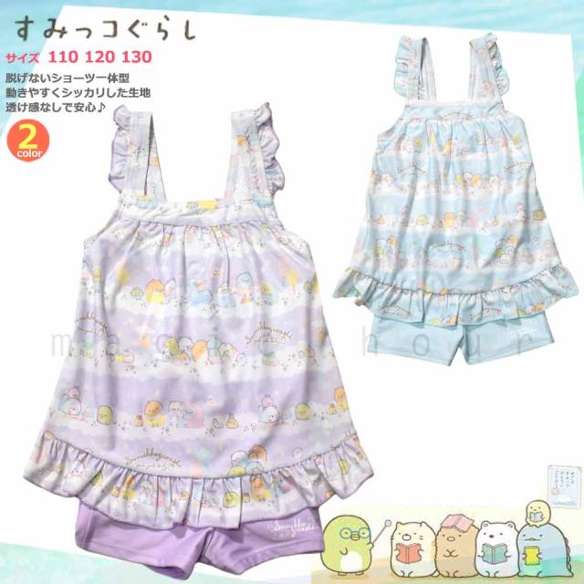 検) すみっこぐらし ブルー ピンク パープル 白 ボーダー こども 子ども 可愛い パステル ワンピ スイムウエア ビキニ 園児 スカート プール 水泳 水遊び 海水浴 人気 キャラクター 3歳 4歳 5歳 6歳 低学年 幼稚園
