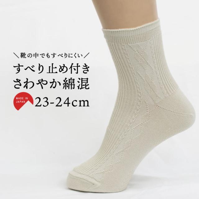 靴の中やフローリングでもすべりにくい仕様です。 綿混素材でオールシーズン対応!