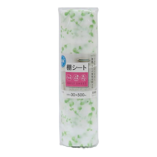 食器棚や棚にちょうどいい、ユーカリの柄が爽やかな奥行30cmのシートです。シートまわりの不快な臭いを消し、シート表面の雑菌や裏面のカビの繁殖を抑えます。市販の防虫剤・除湿剤と併用することも可能です。