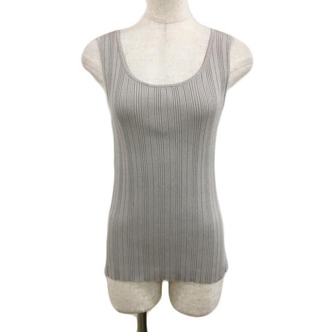 【中古】プラステ カットソー タンクトップ ニット ラウンドネック Vネック リブ 2WAY ノースリーブ S グレー