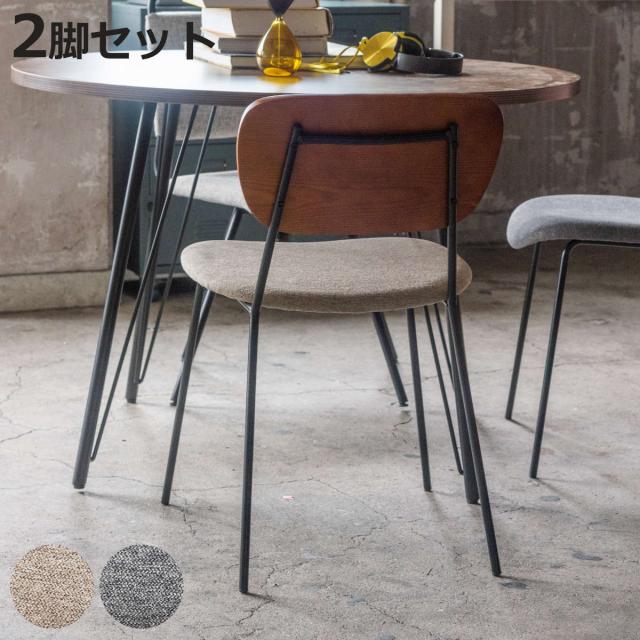 ダイニングチェア 同色2脚セット 座面高46cm スチール脚 ( 食卓 ダイニング 椅子 いす イス 食卓椅子 チェアー スチール セット 異素材 木目 ファブリック 布製 肘なし シンプル スタイリッシュ シック ブラウン )