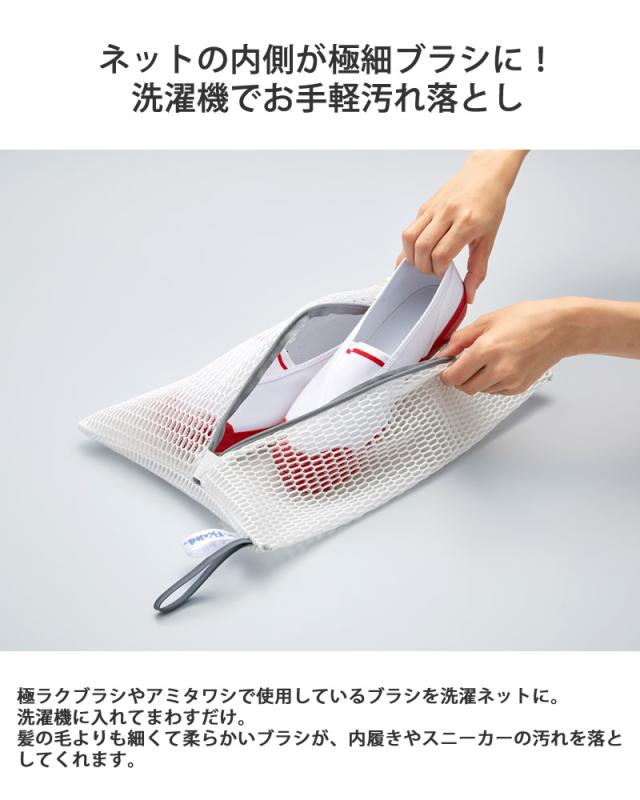 ネットの内側が極細ブラシに!洗濯機で上履きお手軽汚れ落とし♪シューズが洗える洗濯ネット!