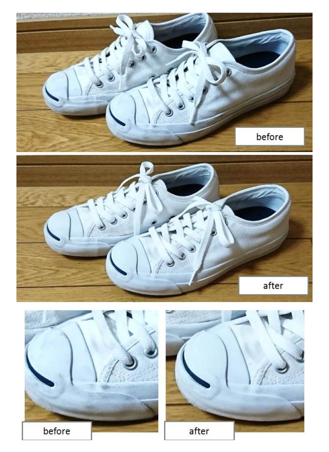 髪の毛よりも細くて柔らかいブラシが、内履きやスニーカーの汚れを落としてくれます。