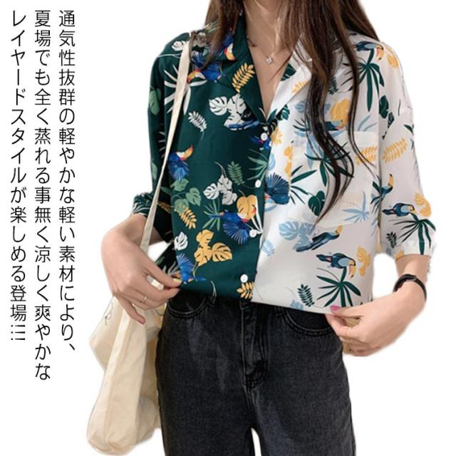 アロハシャツ レディース トップス 夏 シャツ 花柄 半袖 ボタニカル柄 大きいサイズ バイカラーシャツ トップス ダンス 衣装 ヒップホップ コスチューム 開襟 送料無料