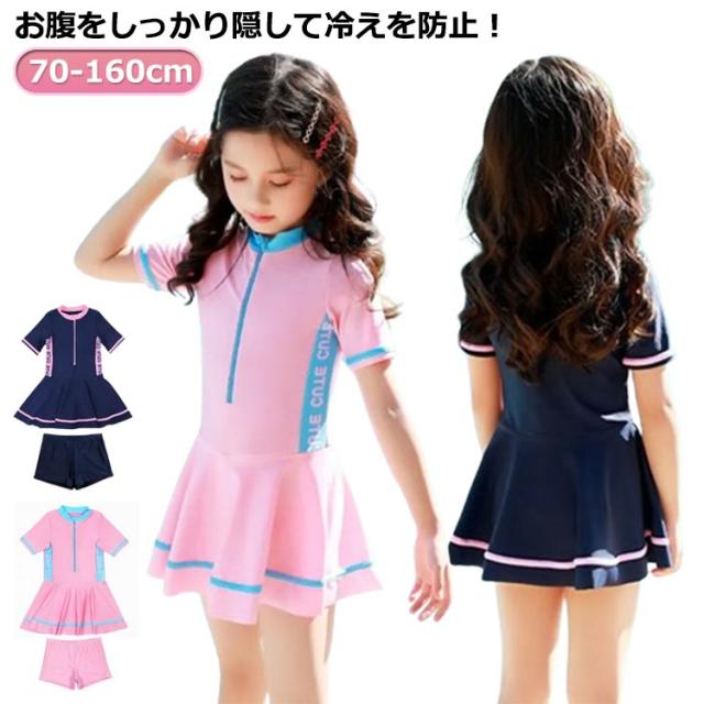 スクール 水着 女の子 キッズ 水着 ワンピース ショートパンツ 上下セット 子供 無地 透けない こども スイムウェア 水泳 ジュニア女児 幼稚園 小学生 中学生 かわいい 紫外線防止 体型カバー 70cm 80cm 90cm 100cm 110cm 120cm 130cm 140cm 150cm 160cm 送料無料