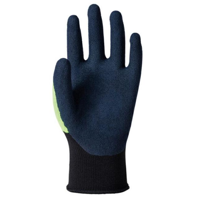 鮮やかな黄色と黒のデザインは、視認性を高め、作業現場での安全性を向上させます。手のひら部分には耐久性のあるコーティングが施されており、滑りにくく、精密な作業を要する場面でも優れた操作性を提供します。