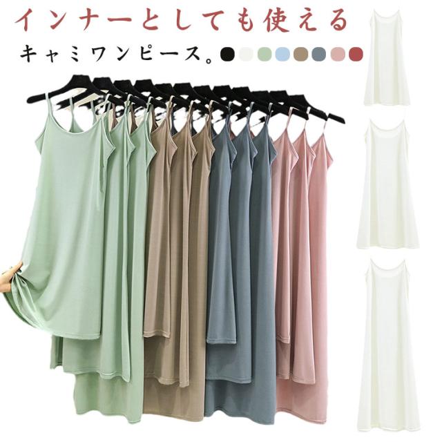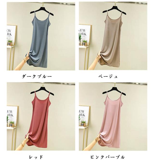 大人 選べる着丈 ペチコート ノースリーブ シンプル 夏 レディース インナーワンピース キャミソールワンピース ロング丈 キャミソール 選べる着丈 ショートワンピース ワンピース 無地 カジュアル ルームウェア 3タイプ 全8色