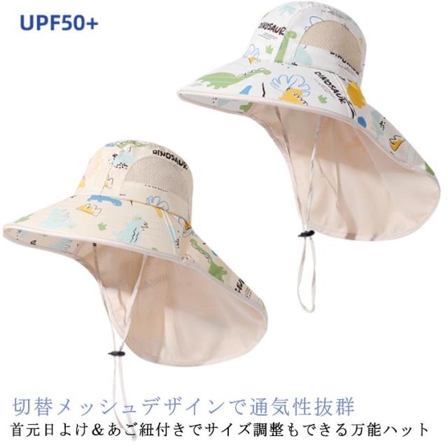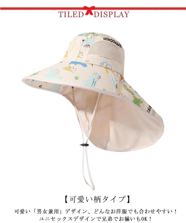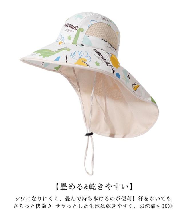 ハット 防風 キッズ帽子 メッシュ サンハット 夏 長つば UPF50+ 冷感 ゴム付き キッズ あご紐付き 帽子 つば広 首筋カバー ネックカバー 折り畳み サイズ調整 日よけ UV 紫外線対策 UVカット 夏用 綿混 柄 可愛い