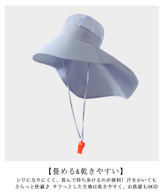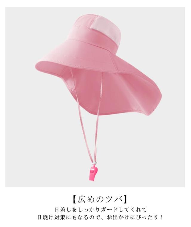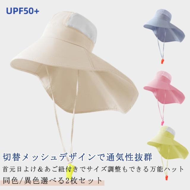夏 キッズ メッシュ ホイッスル ハット キッズ帽子 2枚セット 2枚セット UPF50+ 冷感 折り畳み ゴム付き 長つば つば広 あご紐付き ネックカバー 首筋カバー 防風 サイズ調整 サンハット 日よけ UV 紫外線対策 UVカット