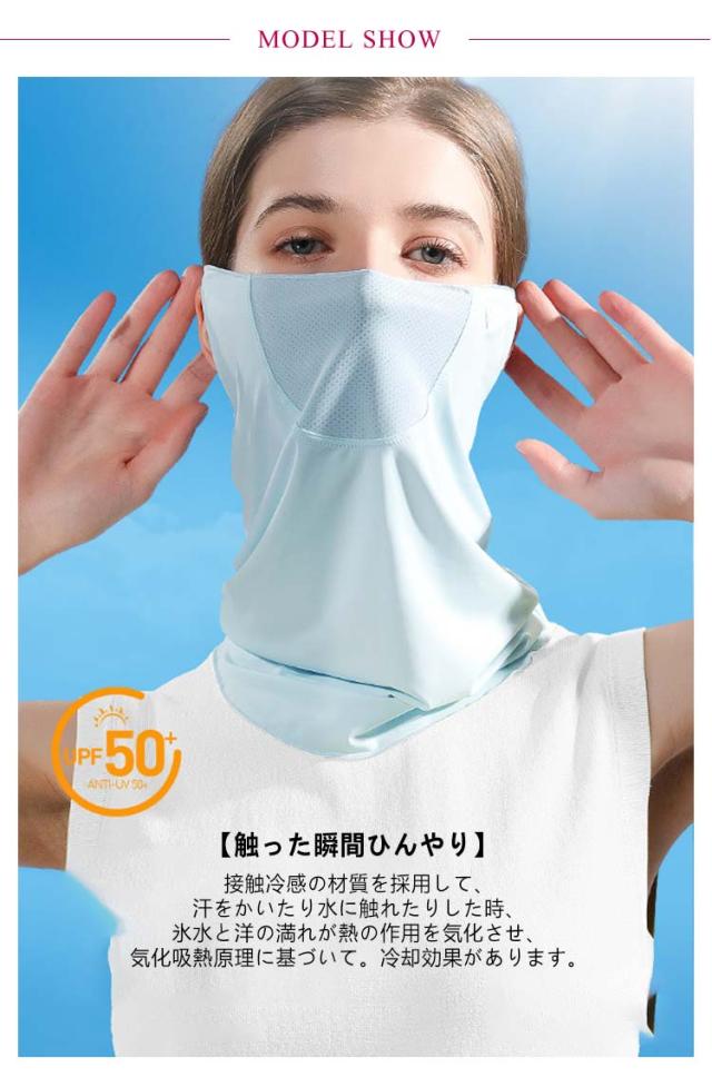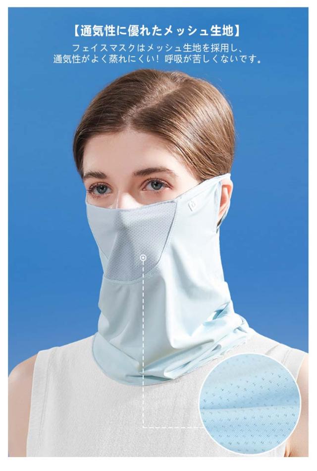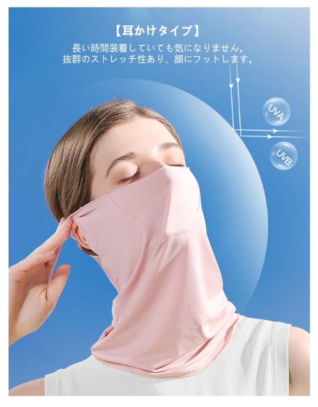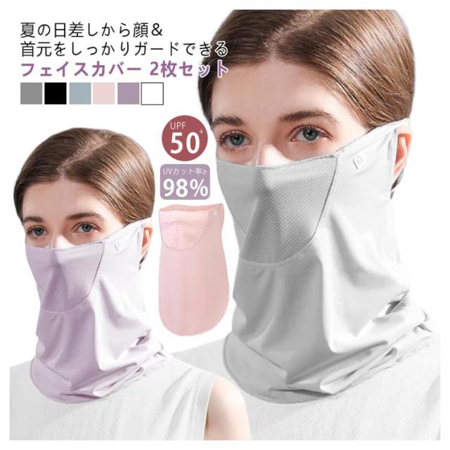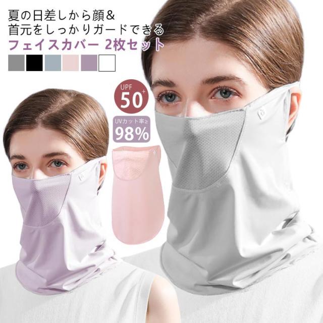 保湿効果 2枚セット 息苦しくない UPF50+ レディース uvカット フェイスカバー ネックカバー ネックガード 2枚セット 通気性 スポーツ 超軽量 洗えるマスク 接触冷感 耳かけ フェイスガード アウトドア 夏 ゴルフ テニス 登山