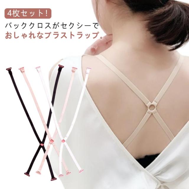 背中見せ インナー 肩紐 4枚セット ドレス ブラジャーストラップ ブラストラップ 4枚セット レディース ブラジャーストラップ 下着 キャミソール 見せブラ セクシー 肩ストラップ 替えストラップ 女性 大人 女子 ブラジャー紐 ブラジャーパーツ
