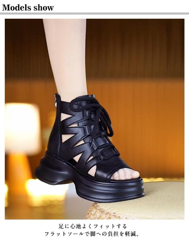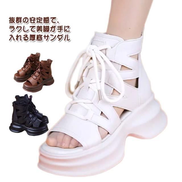 厚底サンダル 編み上げサンダル フラットソール カジュアル レディースサンダル サンダル おしゃれ レディース コンフォートサンダル 厚底 涼しい 安定感 厚底 歩きやすい 大人女性 アウトドア 夏 可愛い 美脚 シンプル