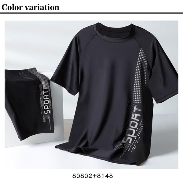 | 陸海に大活躍する、メンズ吸汗速乾スポーツウエア上下セット ソフトな肌触りの冷感素材を使用、良い着心地と抜群の耐久性、ストレッチが効いているので動きやすい。 吸汗速乾:肌の表面から汗を逃す素材で、涼しく通気性が持続。 洗濯後も速く乾きになり、着替えに便利。 速乾性で海やプール、アウトドアでの日焼け予防はもちろん、ランニング等の運動やタウンユースでも大活躍! | |