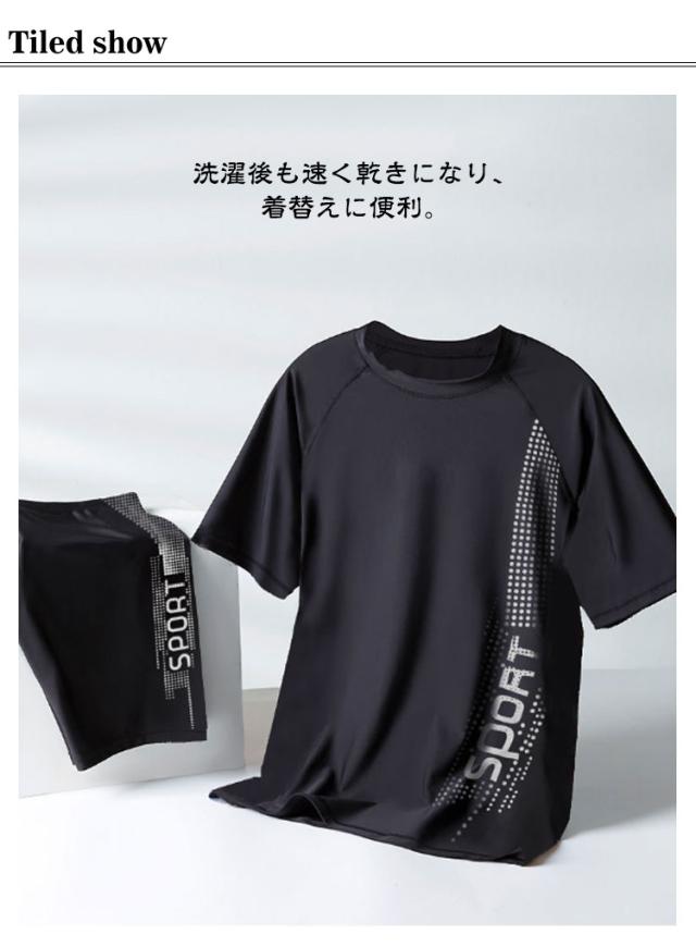 ハーフパンツ 短パン ショートパンツ スポーツウエア スポーツウエア 2点セット 上下セット 半袖 水着 メンズ サーフパンツ ストレッチ UVカット フィットネス水着 吸汗 速乾 おしゃれ スポーツ スイムウェア 大きいサイズ シンプル 薄手