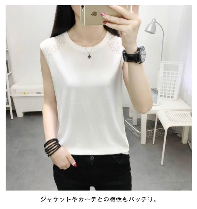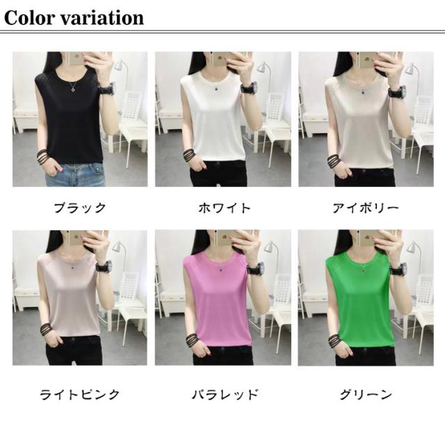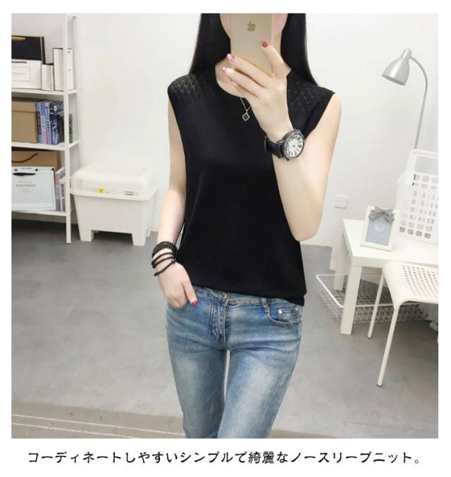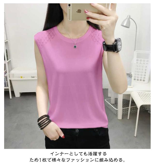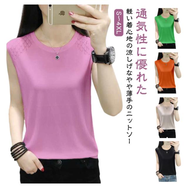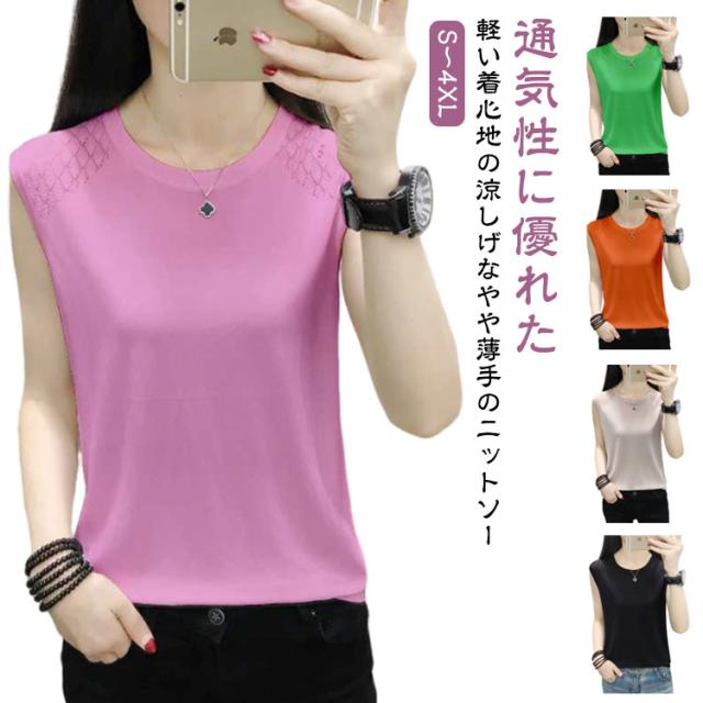 ノースリーブ レディース ニット おしゃれ トップス インナー タンクトップ ラウンドネック 袖なし 大人 秋 サマーニット 春 カットソー 女性 きれいめ 大きいサイズ 無地 シンプル 重ね着 可愛い ノースリーブ ギフト 送料無料