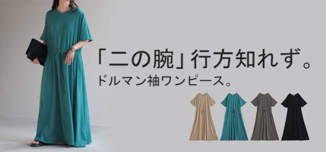 さらっと一枚着るだけで女性らしさとこなれ感を演出するドルマンワンピースです。