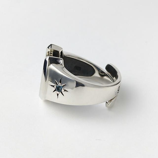 馬蹄 マリアコインリング メンズ シルバー925 ロンドンブルートパーズ ホースシュー メダル メダイユ フリーサイズ 送料無料 おしゃれ 人気メンズアクセサリー 20代 30代 40代 50代 bar-1448