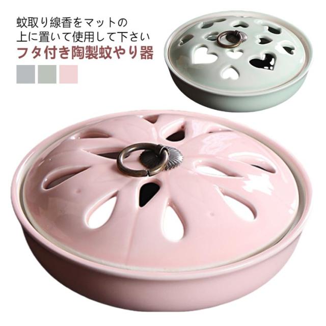 蚊取り線香皿 フタ付き 蚊やり 蚊取り線香入れ ケース 蚊とり線香皿 安全 フタ付き 蚊取り線香 蚊取り線香スタンド おしゃれ ケース 蓋 陶器 蚊取り線香ホルダー 陶磁器 インテリア ハート 水玉 グッズ アイテム おしゃれ 庭