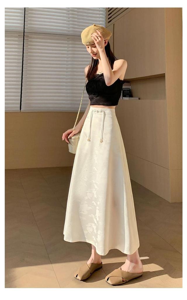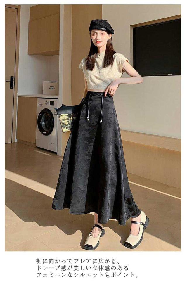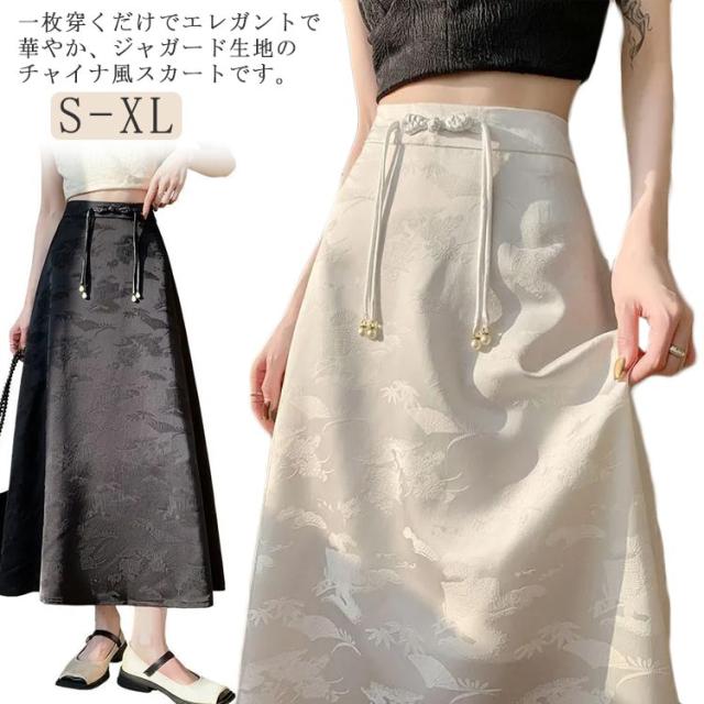 レディース マキシ丈 ロングスカート スカート チャイナ風 通勤 ジャガード おしゃれ ロング丈 マキシスカート チャイナーボタン きれいめ オフィスカジュアル 上品 スカート お呼ばれ フレアスカート おしゃれ 体型カバー 20代 30代