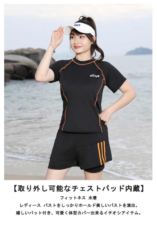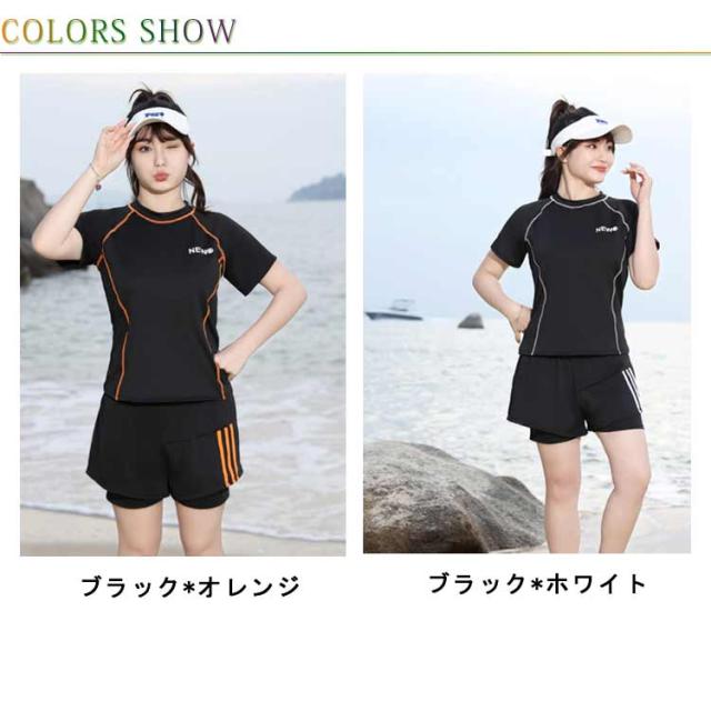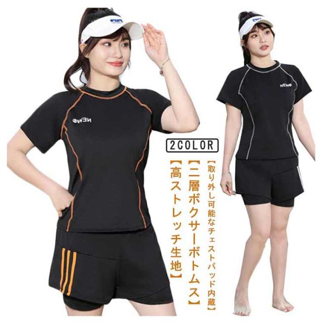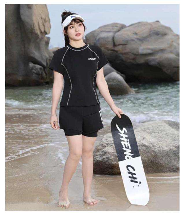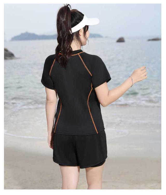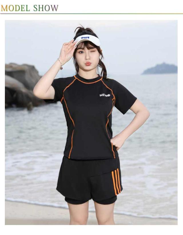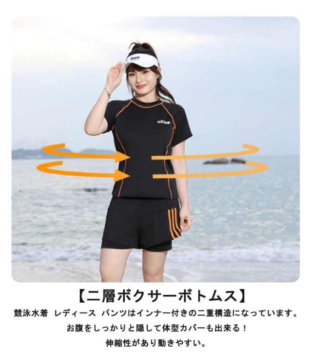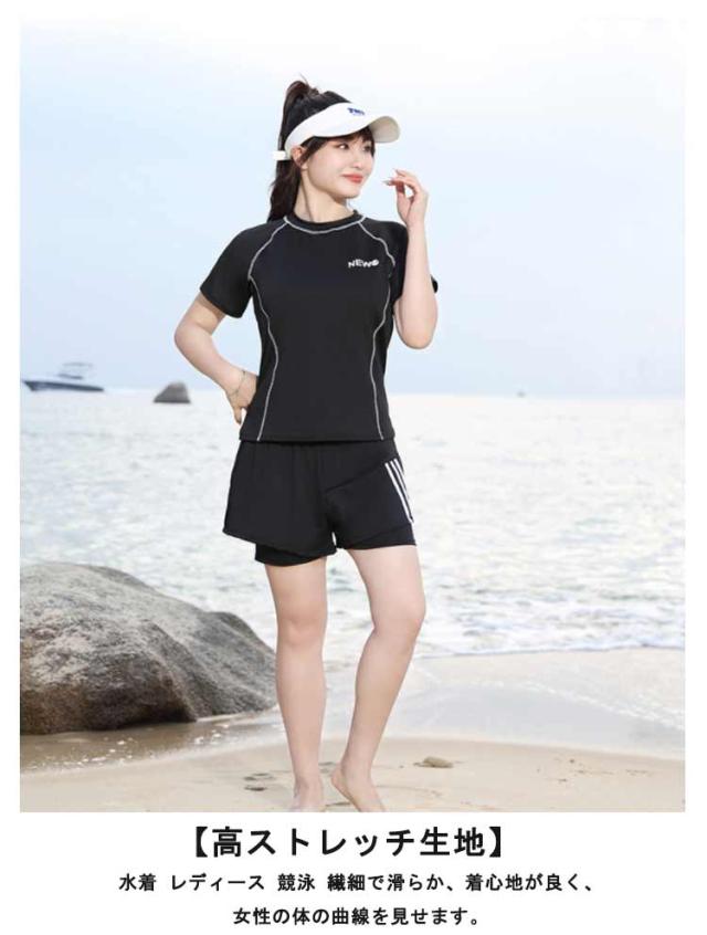 半袖 水着 半袖 夏 スプリット プール リゾート ラウンドネック ボクサー レディース ビーチ お腹カバー ブリーフ ウエスト カバー ハイエンド ショートパンツ 女性 水着 水陸両用 フィットネス水着