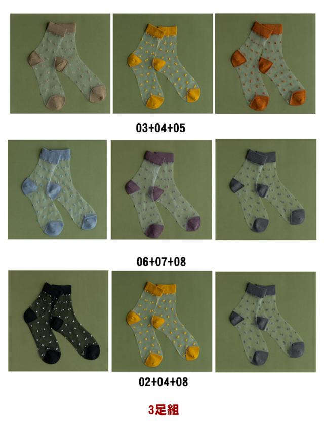| 【シースルーソックス】【3足組】【全8色】 透け感がおしゃれなシースルーソックス。 春〜秋のデイリーユースに! シンプルのデザインで年齢別問わず履けます♪ 薄くて履き心地抜群! | |