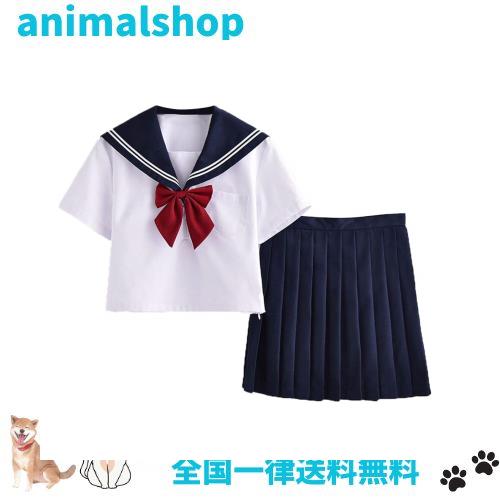 Aculldo セーラー服 半袖 女子制服 学生服 女子高校生 高校生 学生 制服 コスチューム 3点セット JK制服 刺繍 白二本 紺色の襟 可愛い 清