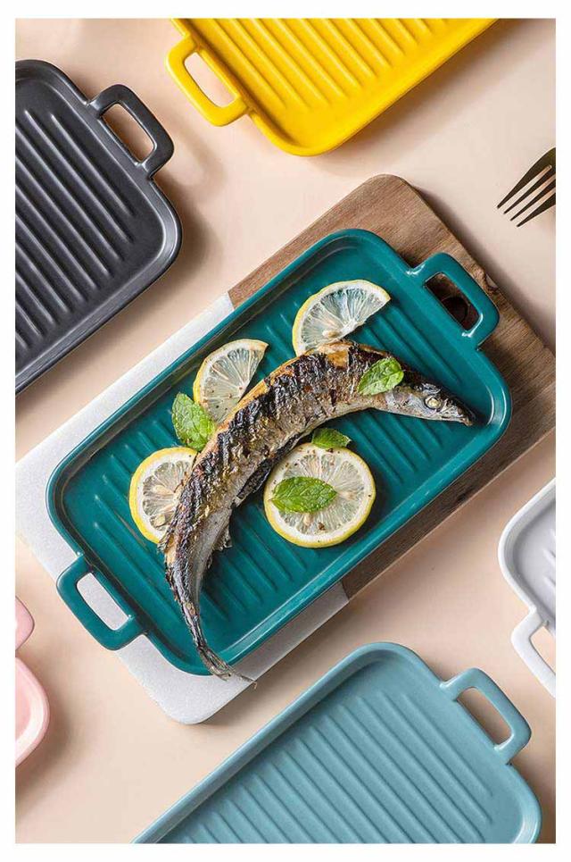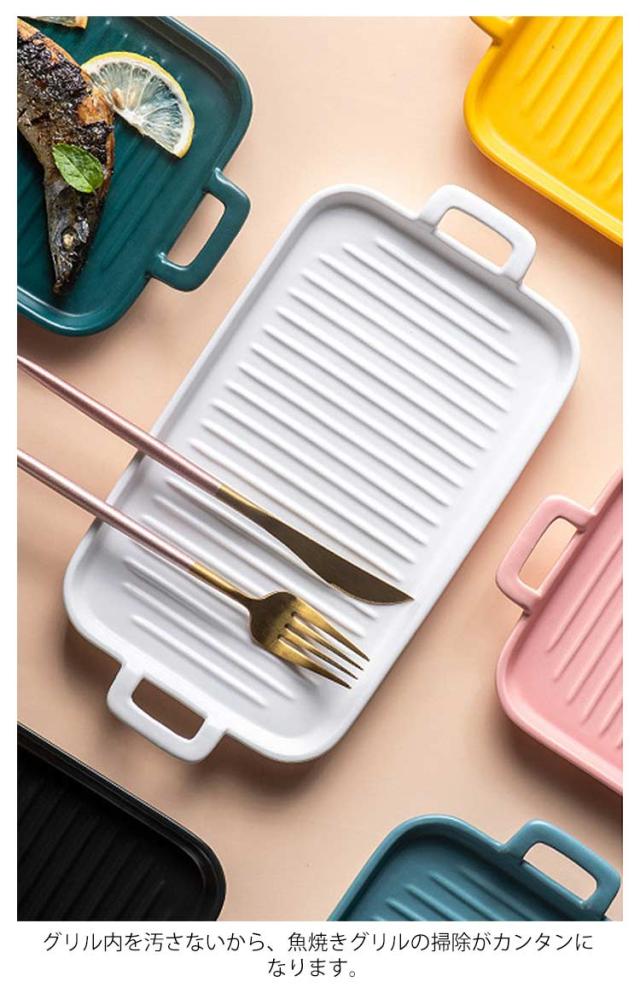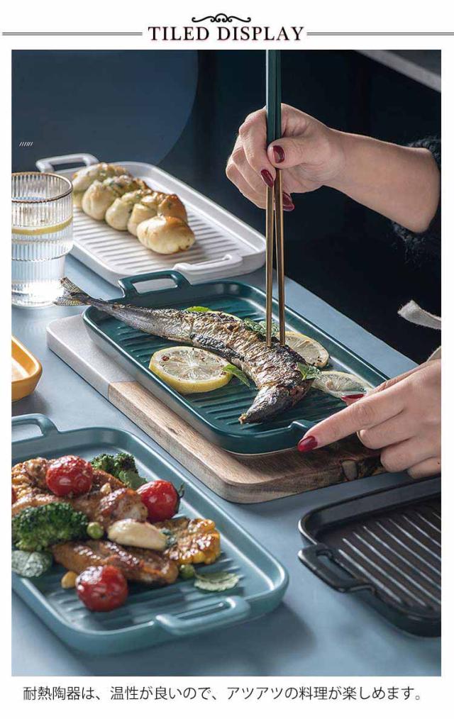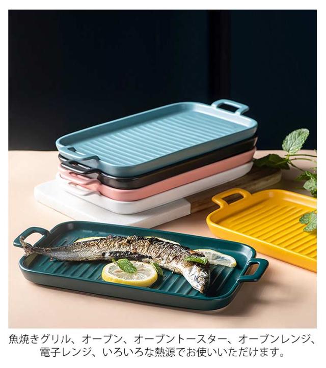 北欧 2個セット 魚焼きグリル トレー グリルパン 電子レンジ 2個セット オーブン料理 鮭 ロースター 耐熱皿 グリルプレート グリル専用焼き魚 陶器