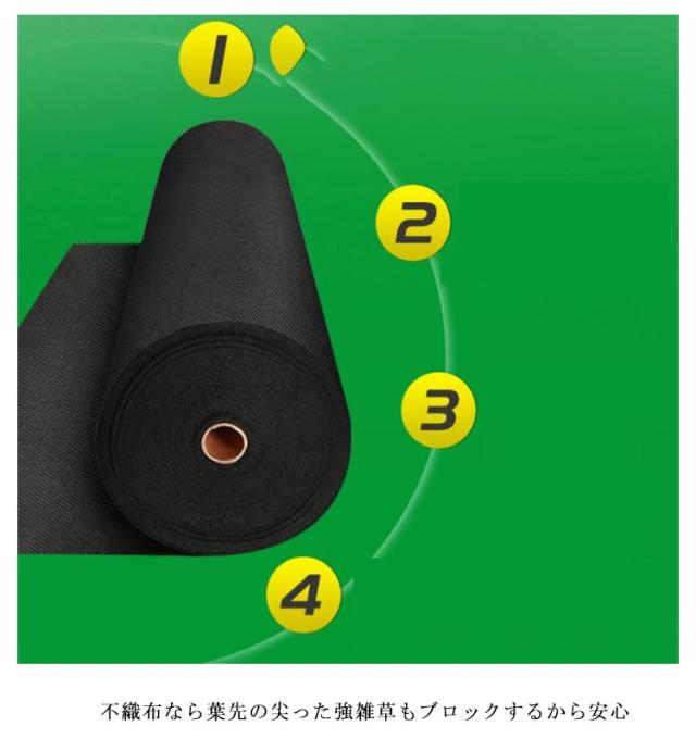 | 1m×10m 高耐久&高遮光 簡単設置で除草の手間いらず! 幅1m長さ10mのお手ごろサイズで、ご家庭での使用にピッタリの 雑草シート 不織布なら葉先の尖った強雑草もブロックするから安心 人工芝や砂利などを上に敷いてお使い頂けますと、 紫外線の影響はほとんどなくなりますので、寿命は更に長くなります。 光を遮ることで光合成を防ぎ、除草剤を使わずに雑草の繁殖を防止します。 水や空気、液体肥料を通すので植栽もできる防草シート(ぼうそうシート) カットもラクラク♪ | |