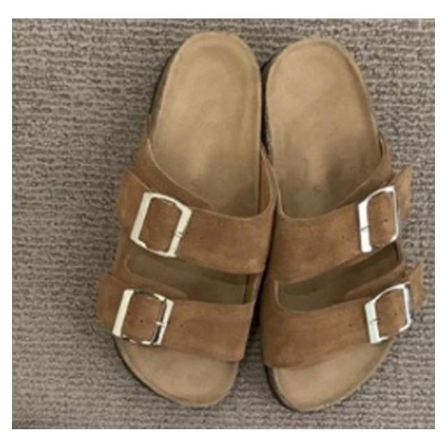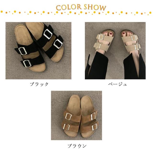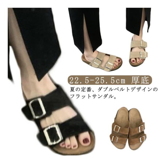 | 22.5-25.5cm!夏の定番、ダブルベルトデザインのフラットサンダル。 アッパーには風合いを生かしたスエード調レザーを使用し使い込むほどに味わいが増します。 柔らかなスエード調レザーで足馴染みが良く、長時間履いても疲れにくいのが魅力◎ 長時間履いても疲れにくいフラットソールなので、お出かけにもピッタリです。 | |