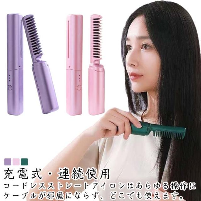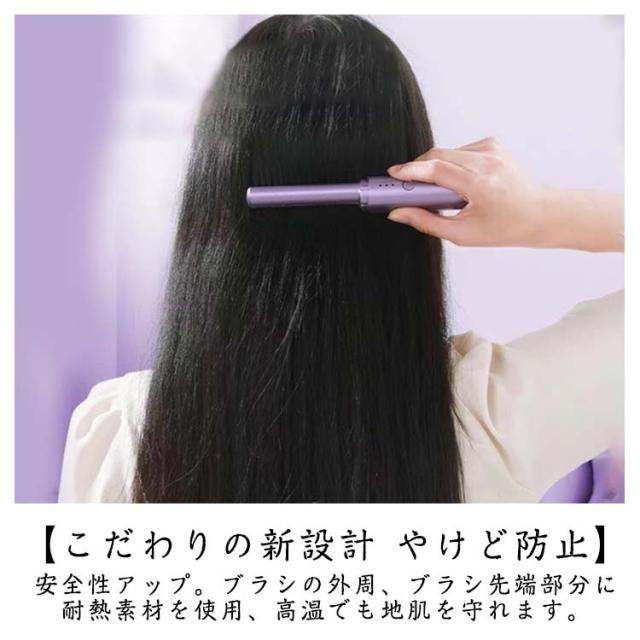 蓋あり mini型 コードレス ブラシアイロン ヒートブラシコードレス USB充電式 ポータブル ヒートブラシコードレス 2way 連続使用 最軽量 静電気防止 温度3段階調節 コンパクト 火傷防止 MAX200℃ 急速加熱