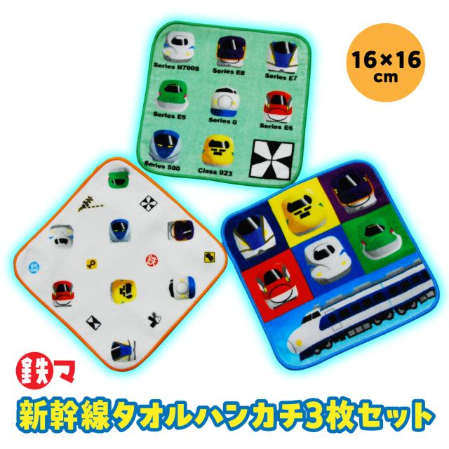 鉄マフぼう 新幹線タオルハンカチ 3枚セット キッズ 子供 子ども ミニタオル 16×16cm 綿100% 電車 新幹線 鉄道 グッズ タオル ドクターイエロー はやぶさ こまち かがやき つばさ JR東海 JR東日本 JR西日本 プレゼント ギフト 贈り物 1000円 ポイント消化