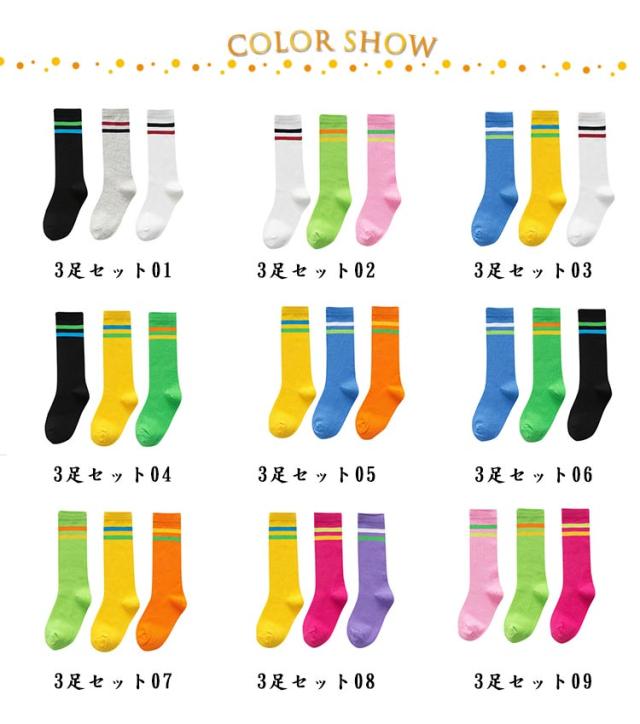 3足セット ハイソックス 子供靴下 3足セット 靴下 キッズ ソックス 男の子 ベビー ソックス 通園 ロング丈 ボーダータイツ 伸縮性 子ども ソックス ジュニア 子供用 女の子 綿 コットン 柔らかい 通気性 ライン 通学 ダンス衣装 発表会 オールシーズン