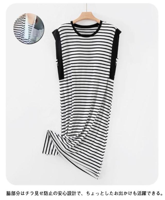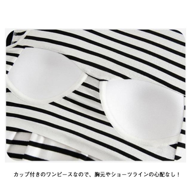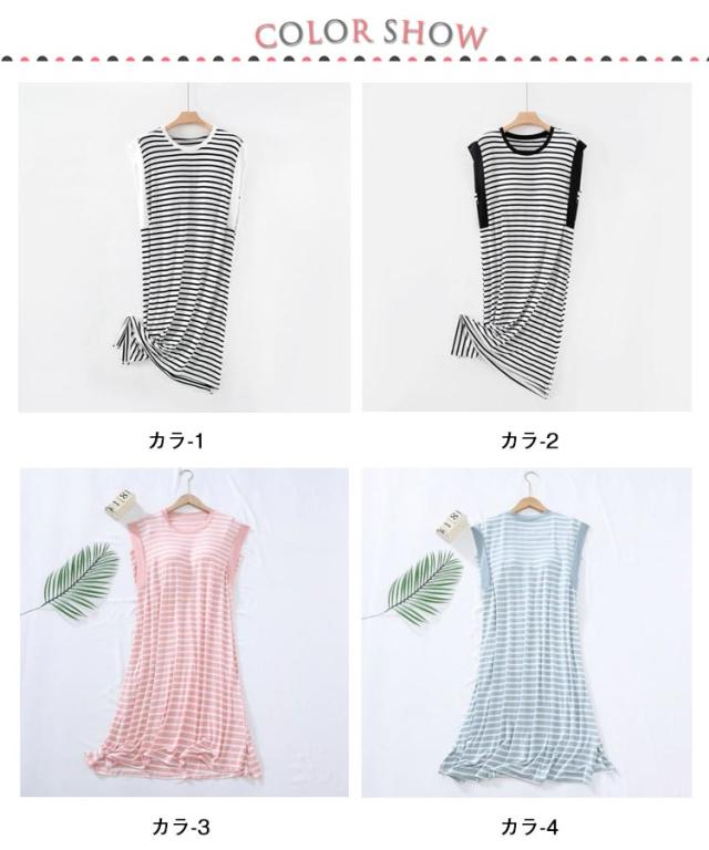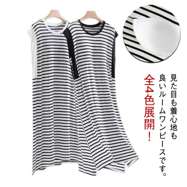 部屋着 レディース ルームワンピ ルームワンピ ゆったり ナイトウェア カップ付き ワンピース パジャマ 春夏 寝間着 可愛い ネグリジェ ロング丈 ボーダー 寝巻き 薄手 柔らかい 通気性