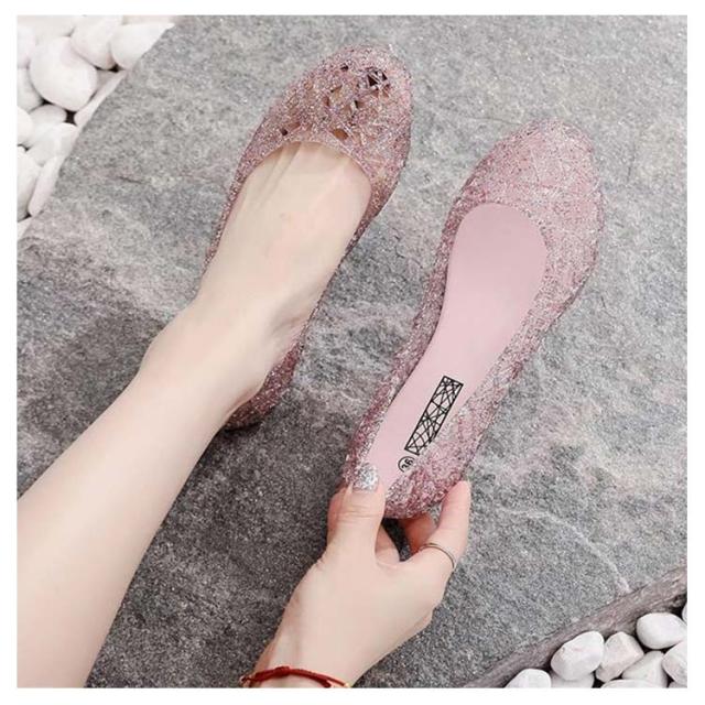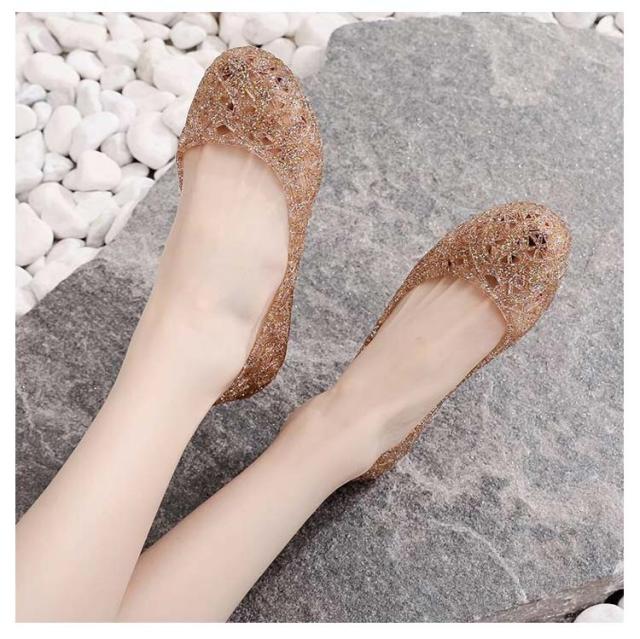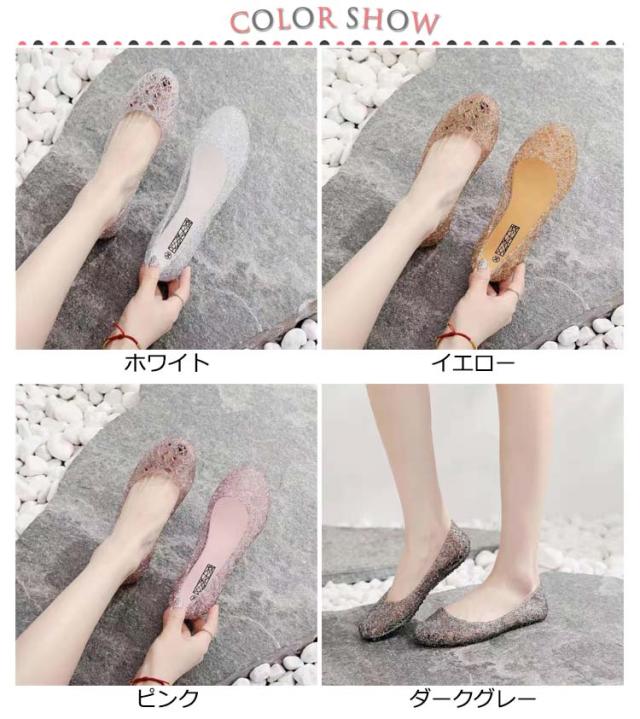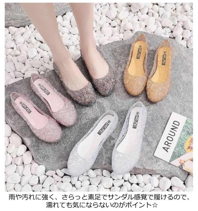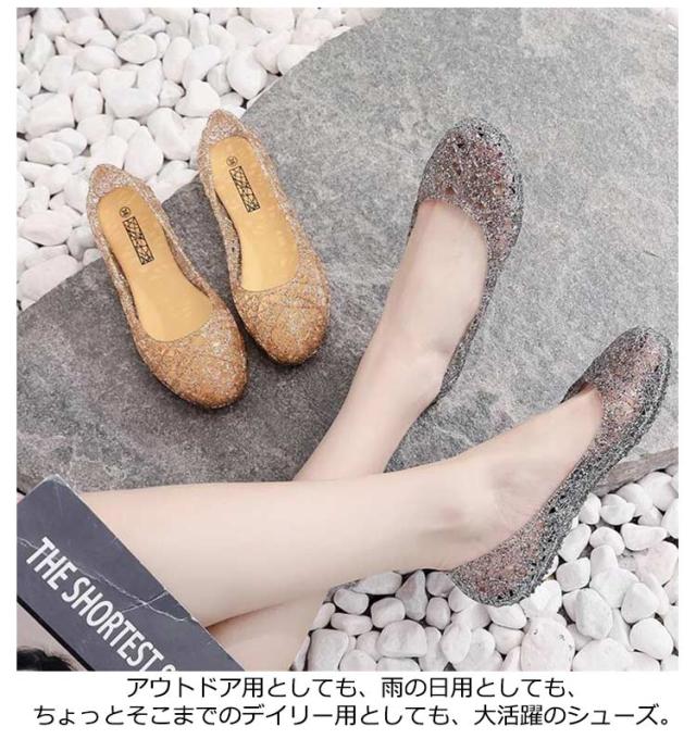 フラット 滑り止め シューズ お洒落 きらきらラメ パンプス ビーチサンダル レディース パンプス 雨靴 サンダル メッシュ 梅雨対策 可愛い シューズ 海 ビーチ