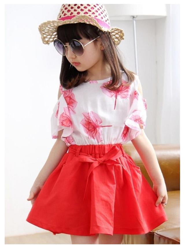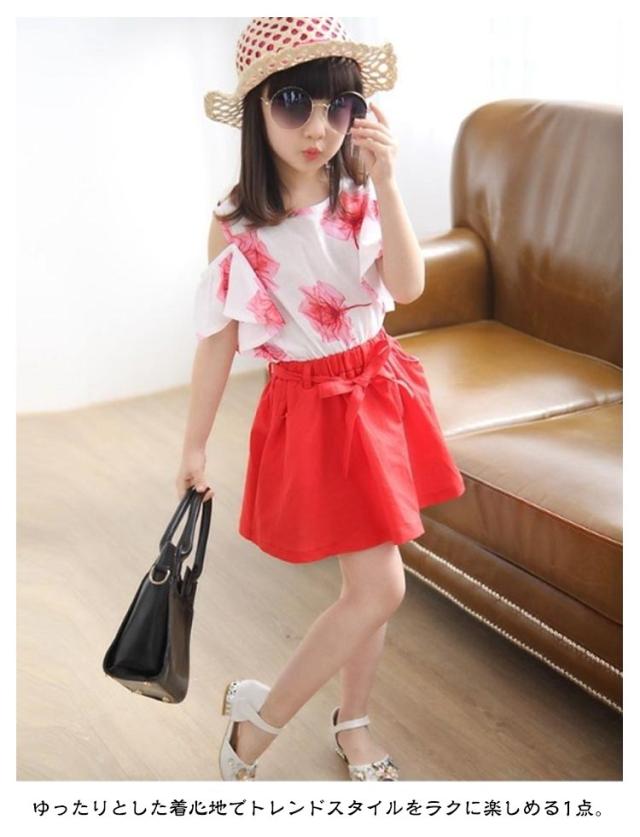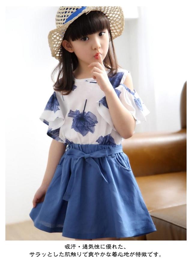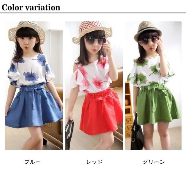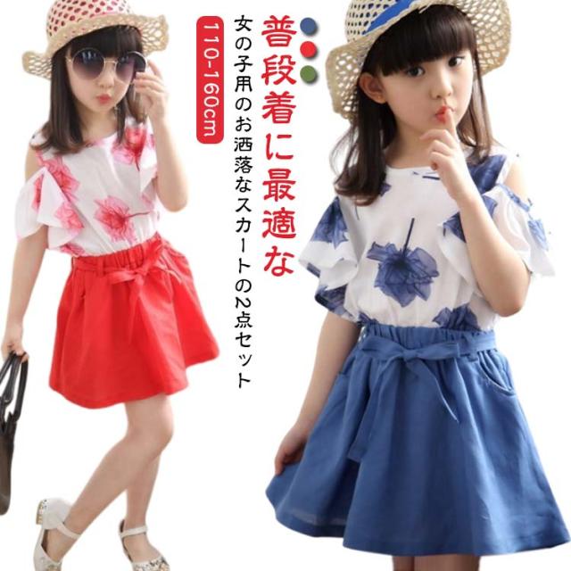 スカート tシャツ 海遊び 子供服 2点セット ガールズ セットアップ キッズ服 トップス キッズ服 Tシャツ 女の子 夏服 肩出し オフショルダー かわいい 上下セット 春夏 花柄 Aラインスカート 通学 旅行 子供服 普段着 可愛い 送料無料 ギフト