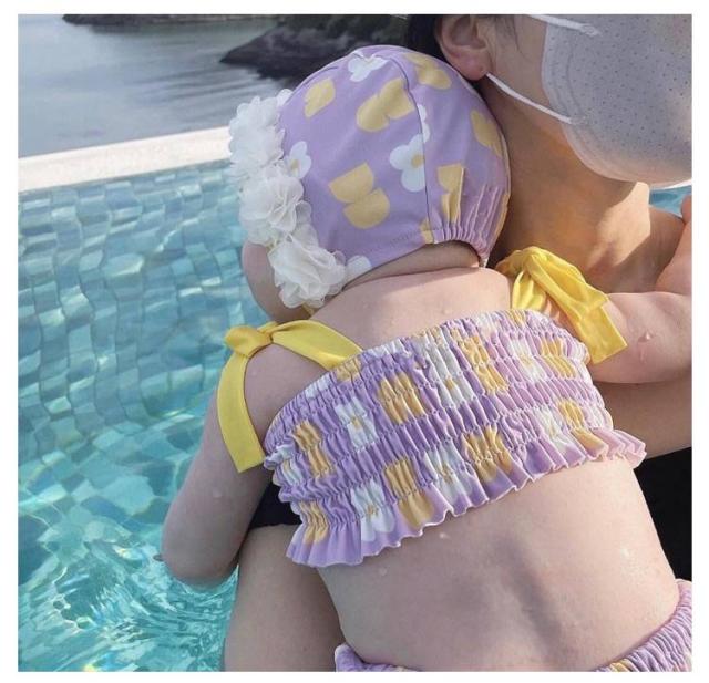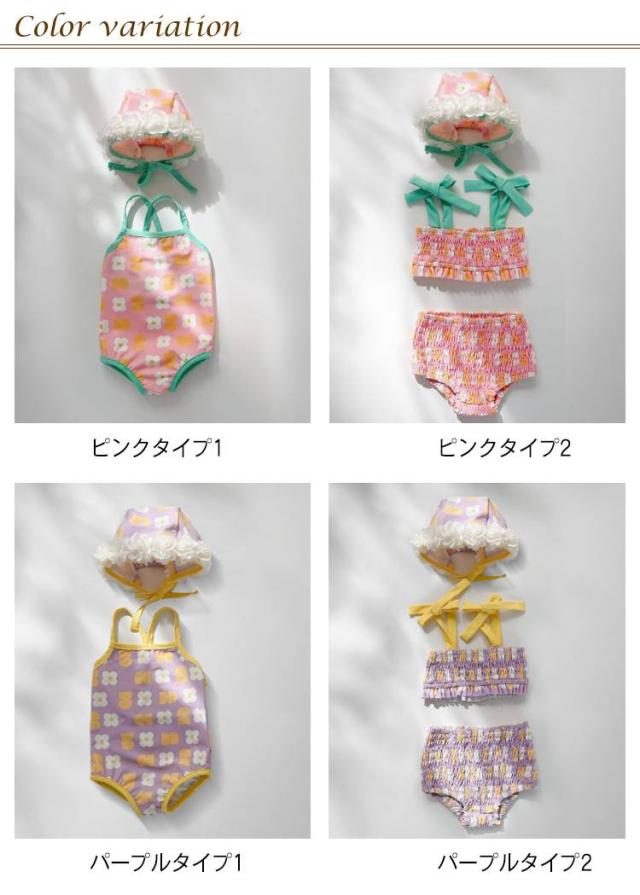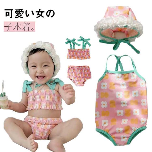 ベビー水着 ベビー水着 スイミング 可愛い キッズ 水着 ビキニ水着 赤ちゃん キャップ付き キッズ水着 セパレート オールインワン 子供 ロンパース 花柄 水遊び 夏 プール 海
