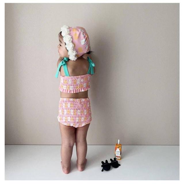 | 可愛い女の子水着。 キャップ付きでお子様を日焼けから守ることもできます。 プールや海で目立ちそうな柄アイテムで子供らしさ満載。 小さなお子さんの肌への負担が心配なお母さんんもこれなら安心ですね。 自宅での水遊びなどで初めての水遊びを安心して楽しむことができますね。 | |