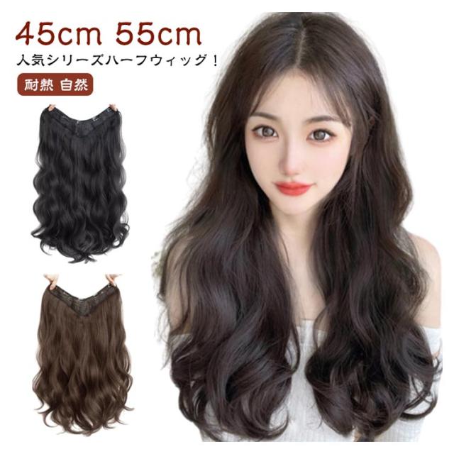 部分ウィッグ キューブウィッグ ロング エクステ ワンタッチ ハーフウィッグ V型 部分ウィッグ ショート ミディアム丈 ストレート つけ毛 ウィッグ 55cm/45cm 医療用ウィッグ 襟足 カール 自然 ナチュラル つむじ ウェーブ セミロング コスプレ