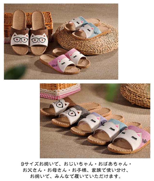 子供用 麻 男性用 ねこ 室内履 子供 夏スリッパ 夏 キッズ 夏用 スリッパ スリッパ 猫 麻 お揃い サンダル 滑り止め 女の子 男の子 ルームシューズ 親子 大人 夏 ラバーサンダル 子供サイズ 大人サイズ 親子コーデ 子供 女性用 家族