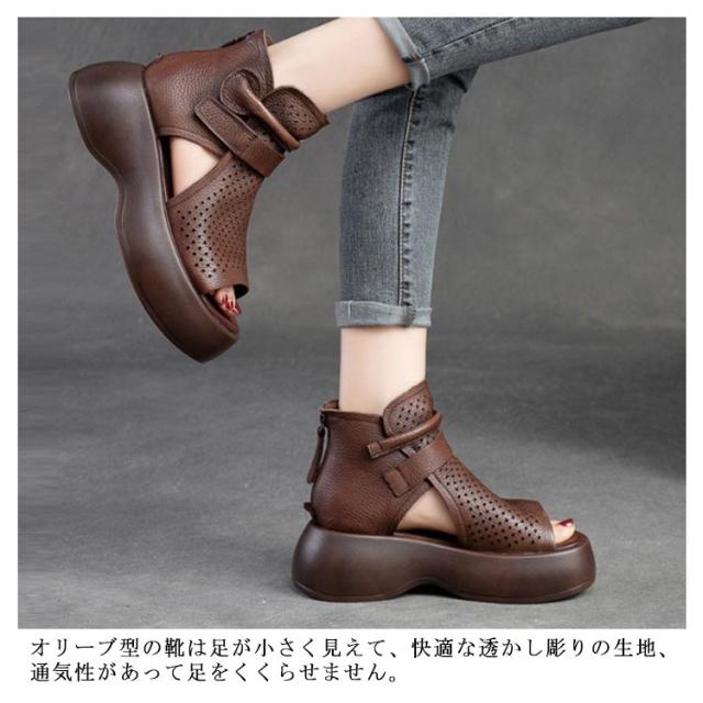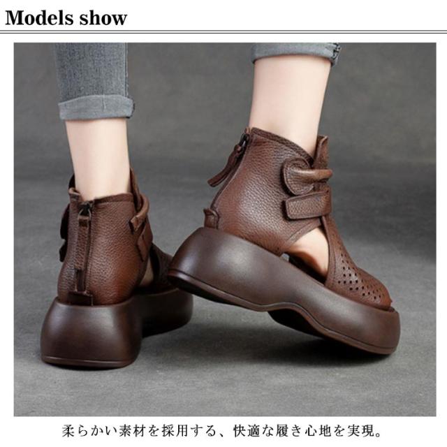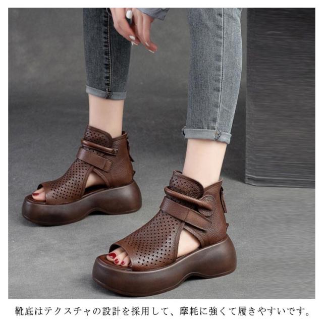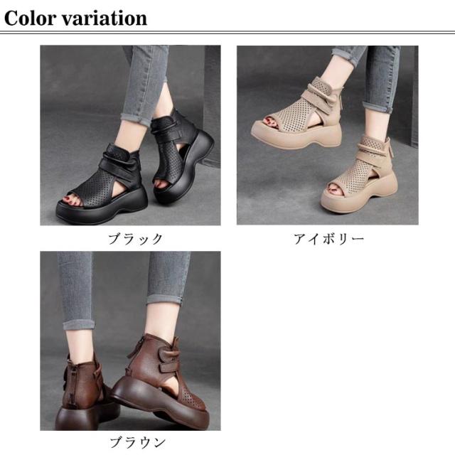 ブーツサンダル サマーブーツ 美脚 歩きやすい サンダル シューズ ブーツサンダル ブーツ 革 PU サンダル レースアップ コンフォートサンダル 通気性 メッシュ 夏 通気 トレロ 30代 大人女性 20代 厚底 40代 レディース 大きいサイズ ギフト プレゼント