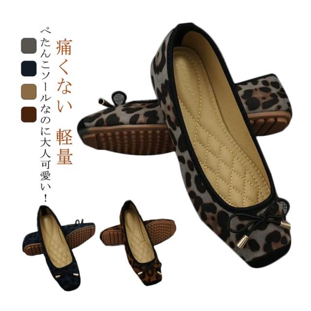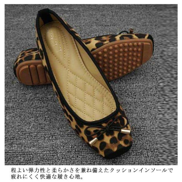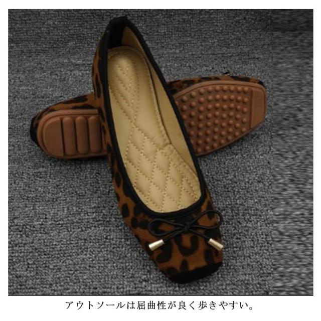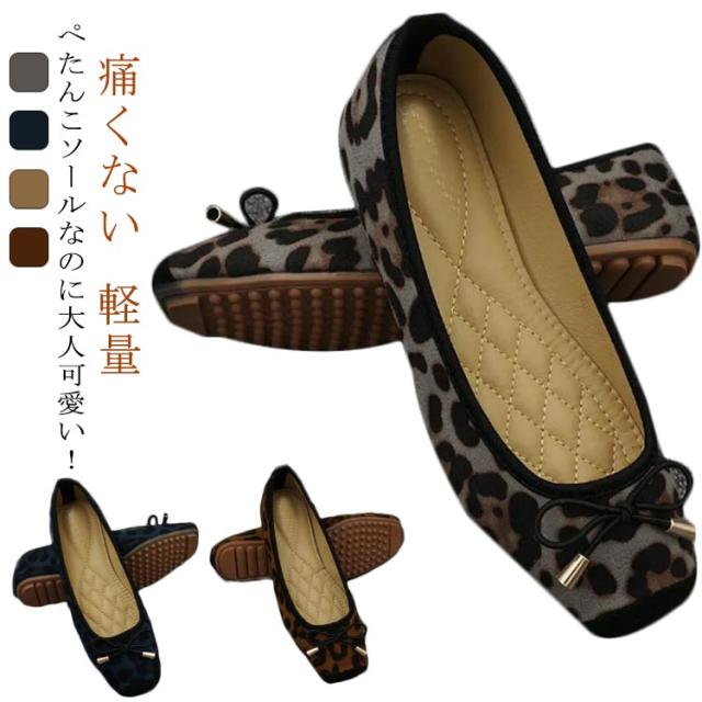 履きやすい おしゃれ ヒョウ柄 フラットシューズ スクエアトゥ 痛くない 柔らかい 軽量 バレエシューズ 春 ローヒール フラット 歩きやすい レディース ローヒール 秋 冬 パンプス おしゃれ かわいい 豹柄 疲れにくい シンプル