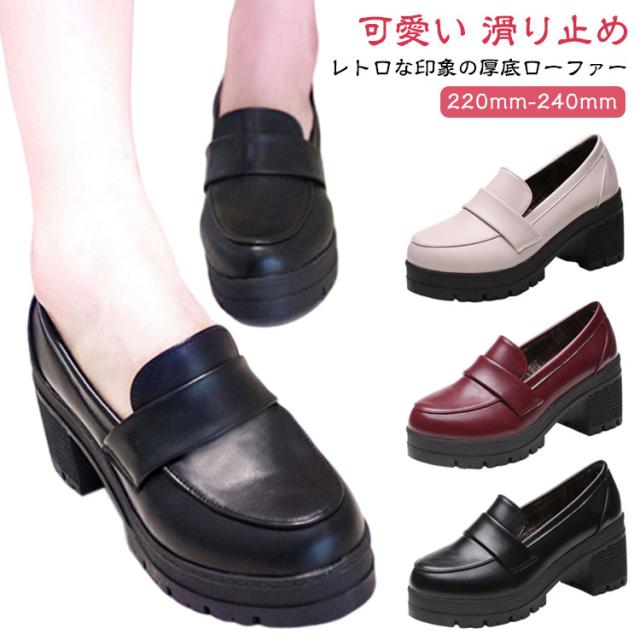 美脚 パンプス ラウンドトゥ ロリータ靴 ローファー 厚底ローファー シューズ お嬢様風 シューズ レザー靴 厚底 無地 厚底 レースアップ PU レディース 女子 通学靴 高校生 シューズ コスプレ 学生靴 歩きやすい 滑り止め シンプル ギフト プレゼント